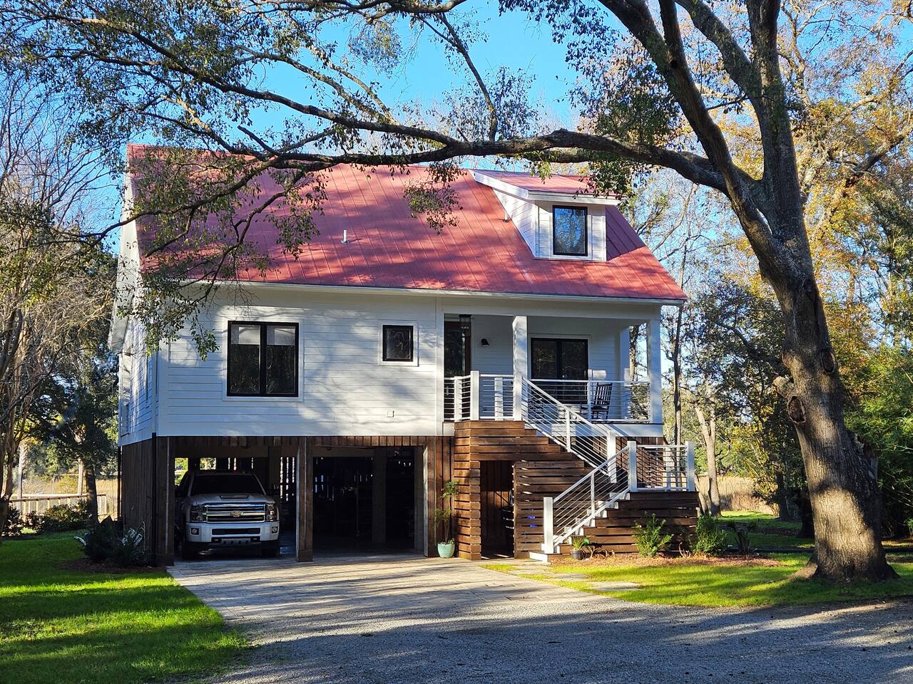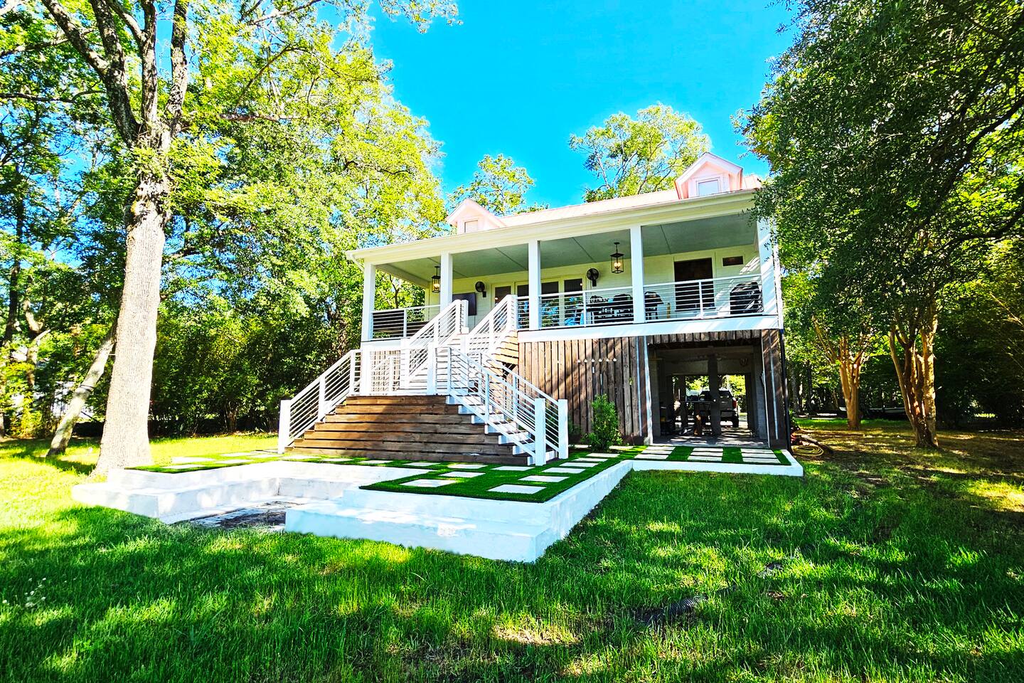 This is our home and we are happy to share it with you! The Awaysis is a custom, elevated cottage situated on 2 acres with expansive tidal creek views. The pictures don't tell the whole story, but we hope they garner your attention enough to give staying here a chance! The huge back yard and porch is great for entertaining or kicking back to watch the infamous cotton candy skies at sunset. Kayaks on site. Walking distance to fishing/crabbing. Permit # ZSTR-01-26-01436