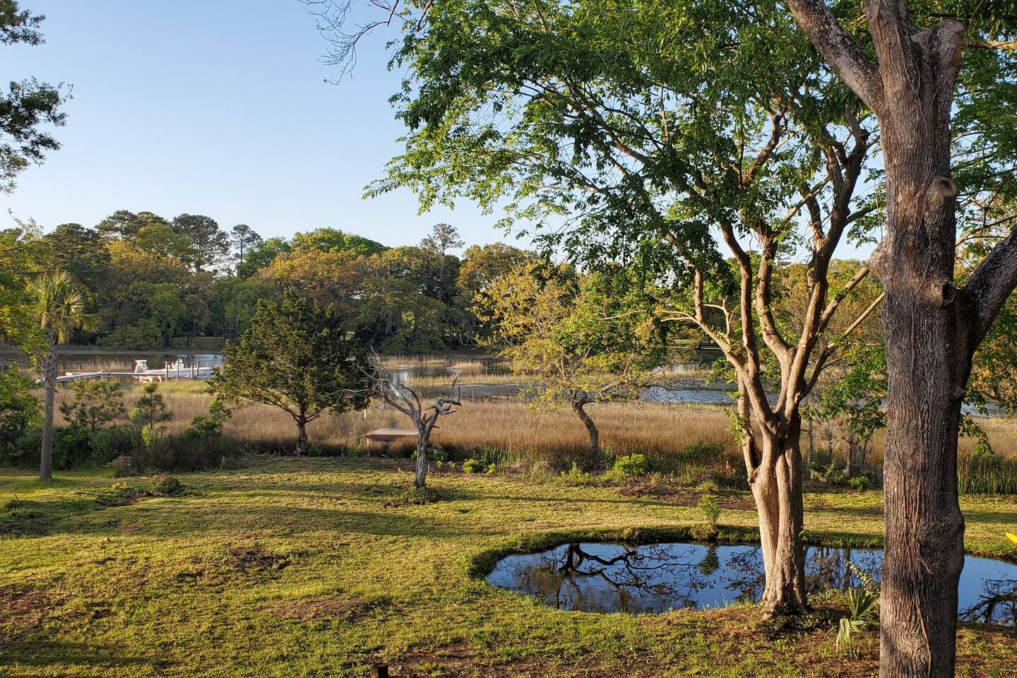 Everything is about 2 minutes per mile in the Charleston Area with a 20 minute minimum if more than 3 stop lights are involved... Notable drive times: - 10 min to Golfing on Kiawah and Seabrook Island - 15 min to have your toes in the sand on Kiawah beaches - 15 min to Charleston Municipal Golf Course - 20 minutes to downtown Charleston - 25 min to Mt. Pleasant/Patriot's Point - 25 - 30 min to Shem Creek - 35 min from Charleston Int'l Airport - 30 - 40 min to Folly Beach - 30 - 40 min to Sullivan's Island - 40 - 45 min to Isle of Palms - 40 min to Charleston National Golf Course Other Amenities: - Free beach parking pass Included! - Boat/RV/Trailer Parking(w/approval) - Pack N' Play, Baby Bath, Momaroo, monitor, etc. - Toiletries, Cleaning Supplies, & Linens - Free & Clear laundry detergent - Hair Dryer & Ironing Supplies - Cooking Essentials and Well-Equipped Kitchen - Grill & Oyster Cooker - Fire pit